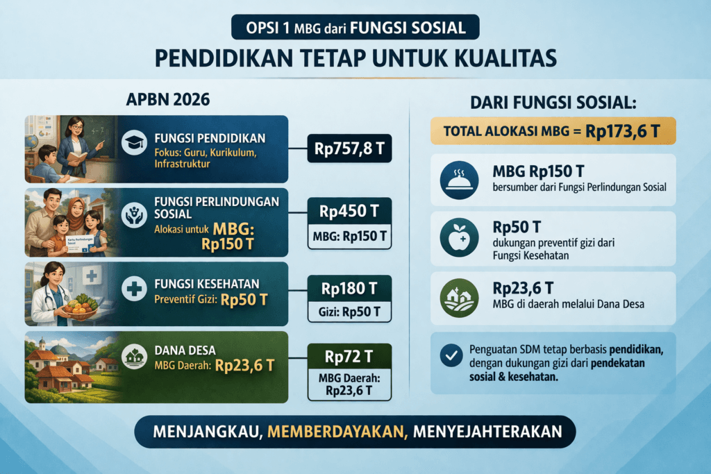 Catatan kritis: Terjadi perdebatan mengenai sumber pendanaan MBG. Sebagian analisis menunjukkan bahwa jika MBG bersumber dari fungsi pendidikan, terdapat risiko ‘trade-off’ dengan program pendidikan lainnya . Namun, Kemendikdasmen menegaskan bahwa anggaran pendidikan tidak dikurangi untuk membiayai MBG, melainkan didanai melalui diversifikasi fungsi anggaran .