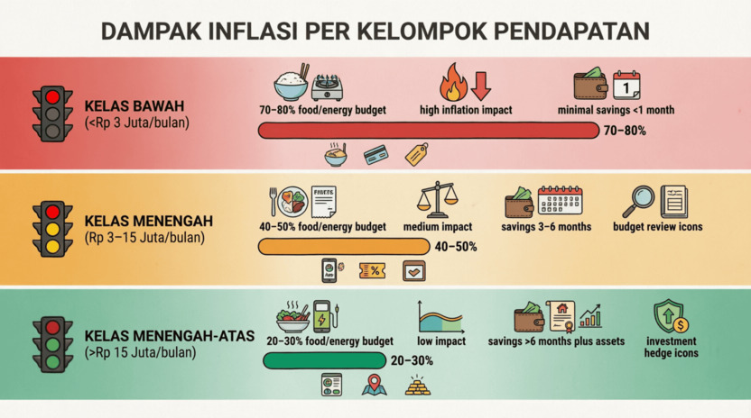 Pertanyaan keras: apakah inflasi “terkendali” berarti aman untuk semua kalangan? Jawabannya: tidak. Inflasi tidak memukul rata — dampaknya berbeda tergantung posisi ekonomi Anda.